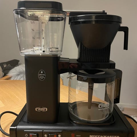 Moccamaster Cup-one, Cream + ét ubrugt , originalt, Moccamaster-krus + 3 x originale, uåbnede Moccamaster-kaffefiltre. Fejlkøb, købt 24/8-2025 (kvittering haves). Brygger én kop kaffe (330 ml) ad gangen, ved perfekt temperatur og gennemløbstid. Slukker automatisk, når vandbeholderen er tom. Kaffemaskinen er købt og registreret hos moccamaster.com, hvilket giver 10 års garanti (kvittering for registrering haves). Brugt få gange. Pris er inkl. fragt. Afhentes eller sendes ved forudbetaling via MobilePay.