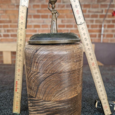 Tobakskrukke, Smuk engelsk vintage tobakskrukke i stentøj med teak låg - helt intakt.