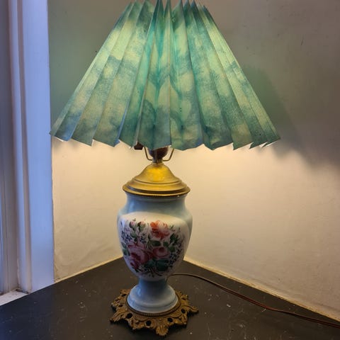 Elegant og klassisk vintage bordlampe i Jugend-stil med fod i messing/sort.
