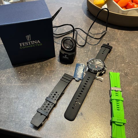 Festina Titanium herreur med blå urskive og gummirem. Uret har titaniumkasse og viser dato samt dag. Velegnet til daglig brug og sport.