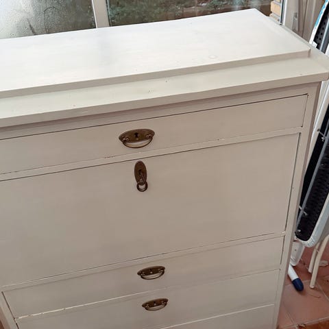 Meget fint og robust chatol gives væk. Det er tungt. Den nederste skuffe kan jeg ikke få op efter at have malet det Ellers er det i rigtig god stand.