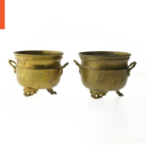 Rigtig fin urtepotte i messing. Med små hanke og fødder. God størrelse.