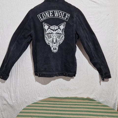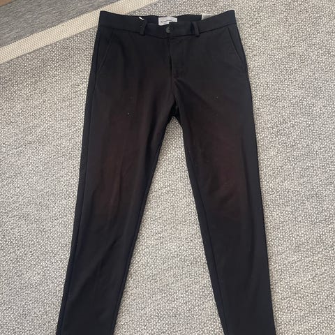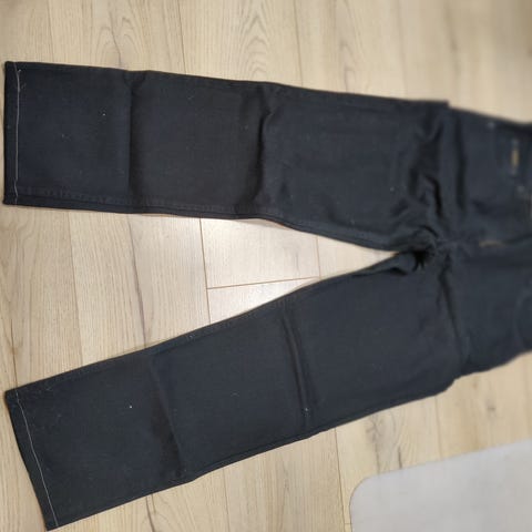 Fine sorte cowboybukser, str. 34/34, forvaskede, med lynlås og 2 frontlommer, 2 baglommer. Fine og intakte, bortset fra et hul på højre knæ. Smalle ben.