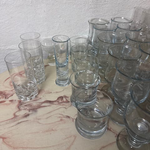 Iittala glas i klart glasmateriale. Sættet indeholder flere glas med stilrent design. Velegnet til servering af drikkevarer.