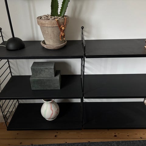 6 korte string hylder, 30*58cm. Inkl hængsler men uden gavle.