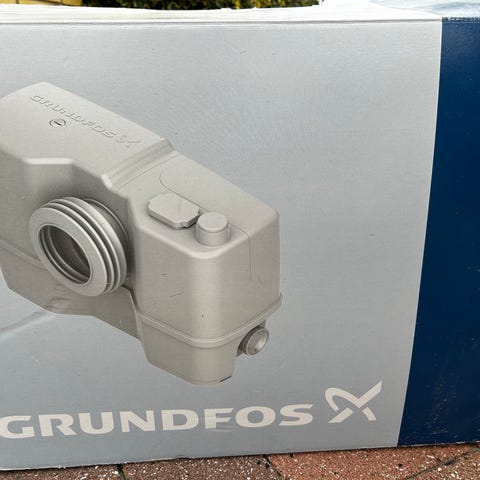 Grundfos Sololift WC-3 pumpe med modelnummer 96789171. Pumpen har en effekt på 240 watt og er designet til 220-240 volt strømforsyning. Produktet er CE-mærket og har en maksimal kapacitet på 1250 liter pr. time.