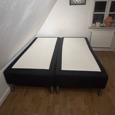 2x enkeltseng 90x200 - tilsammen 180x200 med opbevaring.