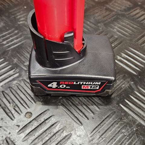 Milwaukee C 12 C batterioplader med input på 220-240 V, 50/60 Hz og 55 W effekt. Opladeren har en udgangsstrøm på 1,3 A og er designet til brug med Milwaukee 12 V batterier.