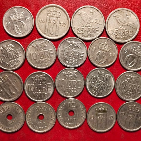 SVERIGE SWEDEN 50 ØRE 1963, 1964, 1968, 1970, 1973, 1977, 1978, 1979, 1980, 1981, 1982, 1983, 1984, 1990, 1992, 2000, 2006, 2007 18 Stk! 3 SLAGS!! + 25 ØRE 1973 + 10 ØRE 1988 I alt 20 Mønter! Prisen er for dem alle!! Porto 25kr. Op til 100gram!
