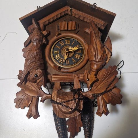 Ur - Art Deco træ, smedet jern, messing - 1920-1930 - Kuckuckur med rondi.
