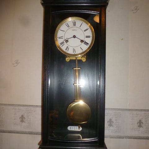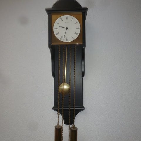 Antik vægklokke, typen pubklok, også kaldet skoleur.