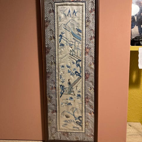 Ancient Chinese Abanish, håndudskåret portræt i sandeltræ og perlemor, indpakket i multifarvet silke, mål 52 cm bred, 27 cm høj, 30 cm dyb, dateret 1900–1910 i Kina, i fremragende stand. Klik på den blå "gå til varen" knap, for at købe eller byde på denne vare. Den samlede pris vil blive vist inden du afgiver dit bud.