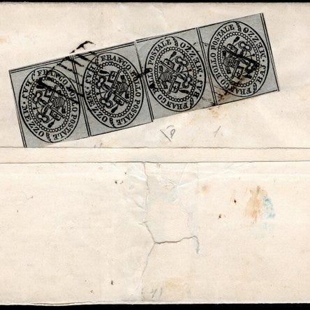 2 grøn baj med gullige nuancer brugt på brev, fra Cagli til Gubbio.