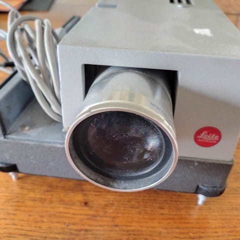 De diaprojektor er af topkvalitet og er fremstillet i 1959, leveres med en fungerende pære og reservepære samt med to diafilmsskuffer, så skift kan foretages hurtigt.