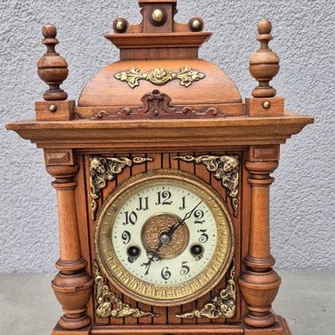 Vintage træ mantelur fra Warmink (WUBA) med åttedages mekanisk værk og slag kl. halv og hel time, ca. 1970–1980. Klik på den blå "gå til varen" knap, for at købe eller byde på denne vare. Den samlede pris vil blive vist inden du afgiver dit bud.