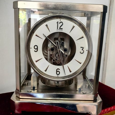 Atmos-perpetualurur af Jaeger-LeCoultre, kaliber 528-8, i messing og glas med firkantet skærm, fremstillet i Schweiz omkring 1967 (1960’erne–1970’erne), mekanisk bevægelse, ikke strike, i god stand med mindre aldersmærker og i funktion. Klik på den blå "gå til varen" knap, for at købe eller byde på denne vare. Den samlede pris vil blive vist inden du afgiver dit bud.