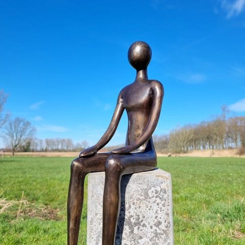 Statue, artistic Statue head on block '' THE SILENCE '' 102 cm height - 102 c...