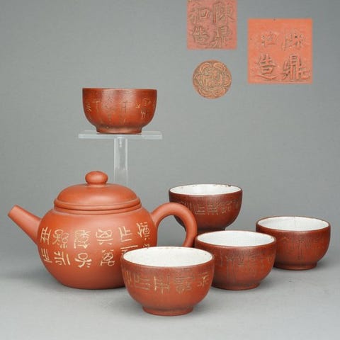 En sen Qing-Yixing Bian-Fu tekande i zisha ler, Wanbao mærke, mål H 5,5 cm x L 11,5 cm x D 7,5 cm, kapacitet 90–100 ml, i fremragende stand. Klik på den blå "gå til varen" knap, for at købe eller byde på denne vare. Den samlede pris vil blive vist inden du afgiver dit bud.