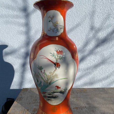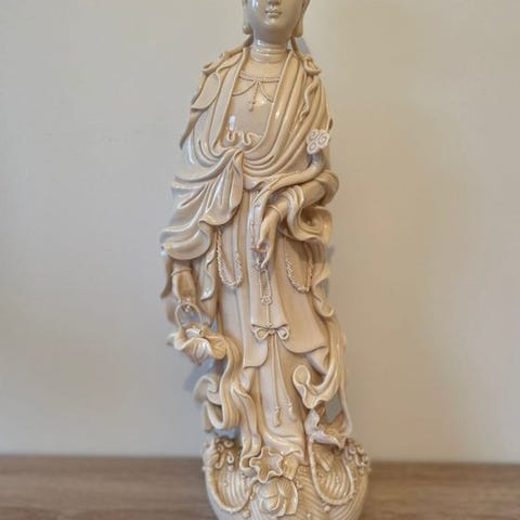 Kinesisk porcelænsfigur fra 1920–1930 i fremragende stand med motiver af stor familie og rose og fire tegn i bunden, højde 43 cm. Klik på den blå "gå til varen" knap, for at købe eller byde på denne vare. Den samlede pris vil blive vist inden du afgiver dit bud.
