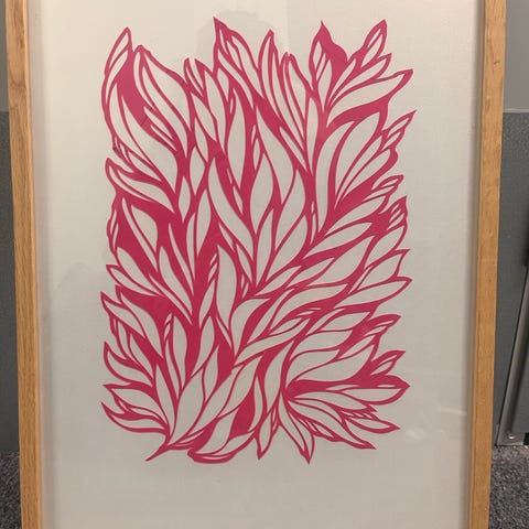 Bubble Girl #2 er et ironisk og kraftfuldt værk, der forener referencer til tradition og samtidskunst. Skabt i 2023, er dette runde lærred på 50 cm en figur af en kvinde med et intenst ansigt, make-up i livlige farver, der tygger en rosa gummi. Billedet er udført med mixed media – akryl, grafit, oliekridt og guldblad – i en balance mellem det hellige og det profane, mellem strenghed og lethed. Den rosa baggrund med pixelmønstre og den også guldbladede ramme fuldender værket med et elegant og moderne præg.