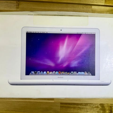 Dette er en sjælden sort version af den originale MacBook-linje, produceret parallelt med de mere almindelige hvide modeller. Kombinationen af Intel Core 2 Duo, lysende Apple-logo og sort polycarbonat-finish gør dette til et meget eftertragtet