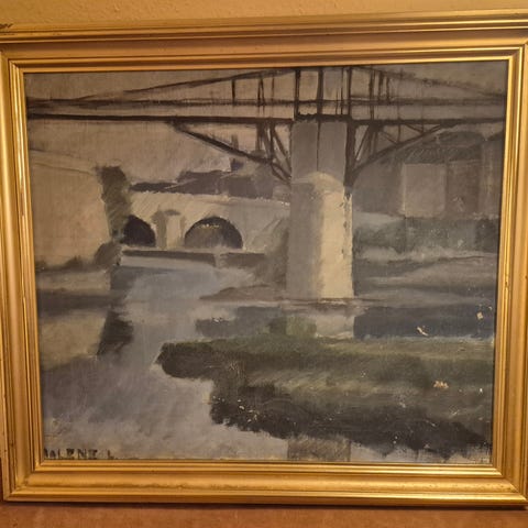 Albert Malet, Vieux pont de Bellac, Haute Vienne, original oliemaleri på lærred fra 1940–1950-talletet, håndsigneret, i særdeles god stand, 76 × 96 cm (lærred) med ramme 67 × 87 cm, solgt med ramme af Gallery og leveret med faktura og certifikat for ægthed. Klik på den blå "gå til varen" knap, for at købe eller byde på denne vare. Den samlede pris vil blive vist inden du afgiver dit bud.
