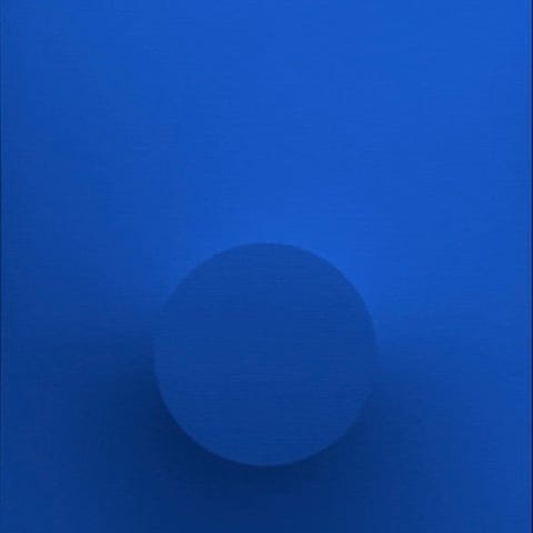 Originalopera af Alessandro Alteo, kendetegnet ved en monokrom blå overflade, der rummer en cirkulær form, i stand til at skabe et fint spil af lys og skygge.