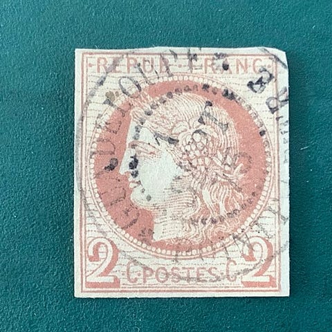 Geografisk oprindelse: Frankrig; Titel: 1 cent Ceres perforeret – blok på fire med to pladefejl og en brudt ramme; Tilstand: blandet, øverste par unused og nederste par postfrisk; Katalog: Yvert 50 og 50b; ældste frimærker fra 1872. Klik på den blå "gå til varen" knap, for at købe eller byde på denne vare. Den samlede pris vil blive vist inden du afgiver dit bud.