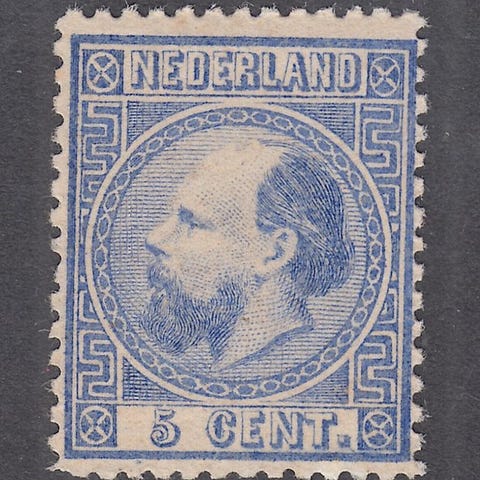 Fra Nederlandene, Koning Willem III, umdent randstykke i ubrugt stand fra 1872, NVPH 27v, med NVPH-certifikat der bekræfter ægtheden med original gum, men har et gumfrit punkt øverst til venstre. Klik på den blå "gå til varen" knap, for at købe eller byde på denne vare. Den samlede pris vil blive vist inden du afgiver dit bud.