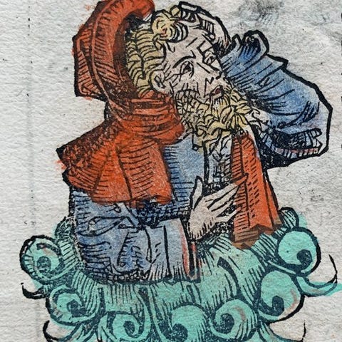 Et folioark fra første tyske udgave af Nürnbergkrøniken fra 1493, med et enkelt fint farvelagt træsnit af Hartmann Schedel med Wolgemut, Pleydenwurff og Dürer, på tysk, udgivet af Koberger i Nürnberg som 1. udgave, i god stand. Klik på den blå "gå til varen" knap, for at købe eller byde på denne vare. Den samlede pris vil blive vist inden du afgiver dit bud.