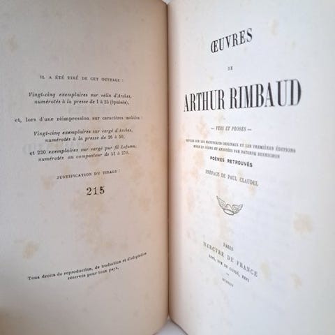 Originaludgaven af denne samling af breve skrevet af Antonin Artaud (1896-1948) under hans ophold på hospitalet i Rodez. Et begrænset oplag på 666 eksemplarer, dette på hvidt vellum, bærer nr. 549.