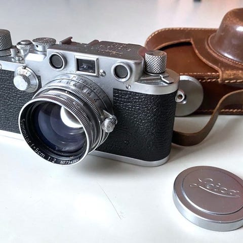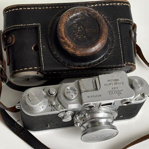 Leica Ic, serienummer 522924, fremstillet ca. 1950–1960, M39-fatning, 35 mm film, ydre tilstand god, lukker defekt og kun til reservedele. Klik på den blå "gå til varen" knap, for at købe eller byde på denne vare. Den samlede pris vil blive vist inden du afgiver dit bud.