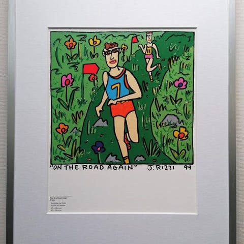 James Rizzi (after) lavede offsetlitografiet Watch Your Back (1995), et Pop Artværk i begrænset oplag, indrammet 41 × 31 cm, signeret i stenen og i god stand, der skildrer en sommerlig scene. Klik på den blå "gå til varen" knap, for at købe eller byde på denne vare. Den samlede pris vil blive vist inden du afgiver dit bud.
