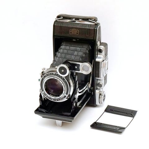 Prestigiosa Reflex, dengang en af de mest prestigefyldte i verden. Teknologisk meget avanceret. Denne reflexkamera begrænser parallaksefejl ved at observere billedfeltet gennem et prismesystem, der reflekterer præcis det, objektivet ser. Baseret på den valgte blænde er det også muligt at vurdere dybdeskarpheden. Dette giver præcis kontrol over fokus på det motiv, der skal fotograferes. Det udskiftelige bagstykke-system gjorde det muligt hurtigt at skifte filmtype (BN - Farve - Dia - Følsomhed).