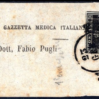 Afsendt fra Lucca til Osimo, med sjældent stempel (R) 'Lucca strada Ferrata'.
