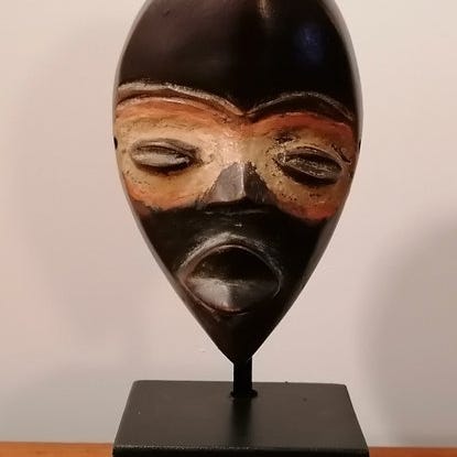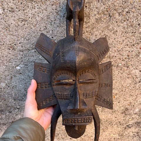 Alte Maske, Baule-maske fra Elfenbenskysten, midten af det 20. århundrede, højde 34 cm, provenance Galerie/Antiquitätenhändler, i god stand. Klik på den blå "gå til varen" knap, for at købe eller byde på denne vare. Den samlede pris vil blive vist inden du afgiver dit bud.