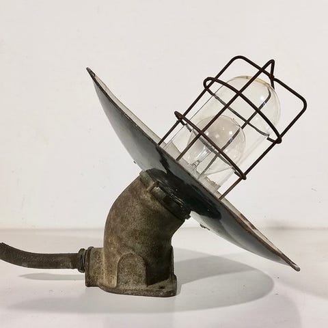 Kunstnerisk fremstillet loftslampe eller væglampe i jern og glas, industrielt solrosesformet design, fremstillet i Frankrig omkring 1990–2000, diameter 50 cm, dybde 17 cm, vægt 1,236 kg, i god brugt stand med mindre aldersrelaterede mærker, fungerer og elektrisk kontrolleret. Klik på den blå "gå til varen" knap, for at købe eller byde på denne vare. Den samlede pris vil blive vist inden du afgiver dit bud.