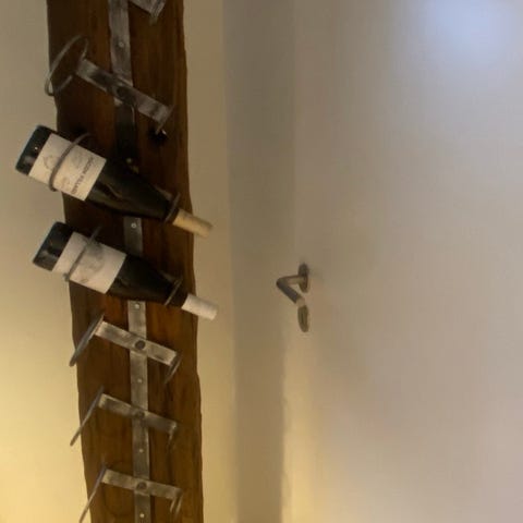 Den nederste del består af tre rækker af formede stativer til opbevaring af flasker, med en samlet kapacitet på omkring 15 flasker.