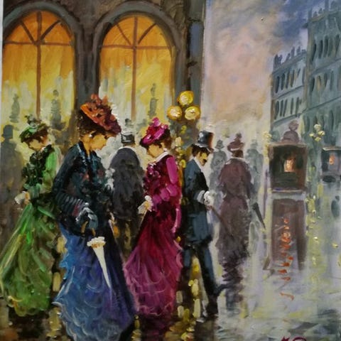Fire gamle Paris-attrap-tryk i en mørk træramme med en tynd gylden indvendig kant, med titlen Parigi, måler 30 x 23,5 cm og vejer 400 g, unsigned og af ukendt kunstner i originaludgave, dateret 1940-1950, i Art Nouveau-stil, teknik AI. Klik på den blå "gå til varen" knap, for at købe eller byde på denne vare. Den samlede pris vil blive vist inden du afgiver dit bud.