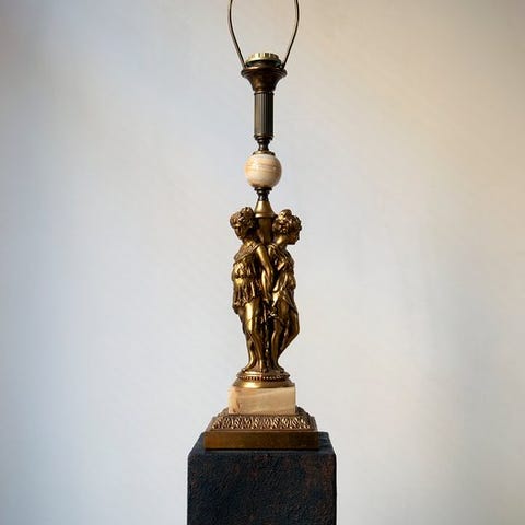 Messing Art Déco bordlampe fra Lustrerie Deknudt fra 1970'ernes, oprindelse Belgien, 70 cm høj med en foddiameter på 11,5 cm, skærm 51 × 34,5 cm, Fitting E27, kabel 220 cm, vægt 4,3 kg, i fremragende funktionelt stand. Klik på den blå "gå til varen" knap, for at købe eller byde på denne vare. Den samlede pris vil blive vist inden du afgiver dit bud.