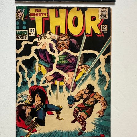 Journey Into Mystery/Thor, førsteudgave tegneserie nr. 112 – Origin Of Loki, af Jack Kirby, Chic Stone, Vince Colletta og Stan Lee, i god stand. Klik på den blå "gå til varen" knap, for at købe eller byde på denne vare. Den samlede pris vil blive vist inden du afgiver dit bud.