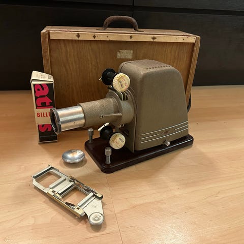 Projektoren er mere end 60 år gammel, men er stadig i yderst god stand, se billeder for alle detaljer.