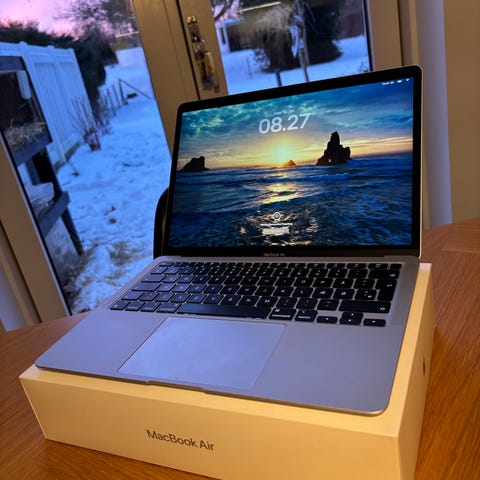 Macbook Air 2019 i acceptabel stand med ridser og fordybninger, se billeder, sendes kun med oplader.