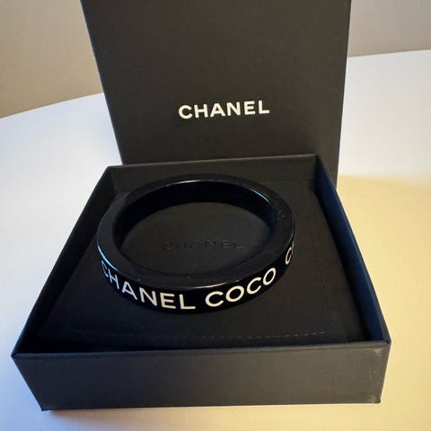 Et enestående sæt bestående af to CHANEL-armbånd i guldtonet metal. Hvert stykke er udsmykket med sort emalje og forbedret med lysende kunstperler, hvilket skaber en slående leg med tekstur og elegance. Designet bliver yderligere løftet af det karakteristiske CC-logo, et tidløst symbol for Maison. Begge armbånd bærer det ovale mærke med fin stempling 'Chanel B11 CC P - Made in Italy', hvilket bekræfter deres ægthed og fine håndværk. Håndledsstørrelse: Passer op til ca. 19 cm Materiale: Guldtonet metal, sort emalje, kunstperler Oprindelse: Fremstillet i Italien Et virkelig fængslende sæt, der indkapsler Chanels fusion af raffinement og moderne glamour – perfekt at bære