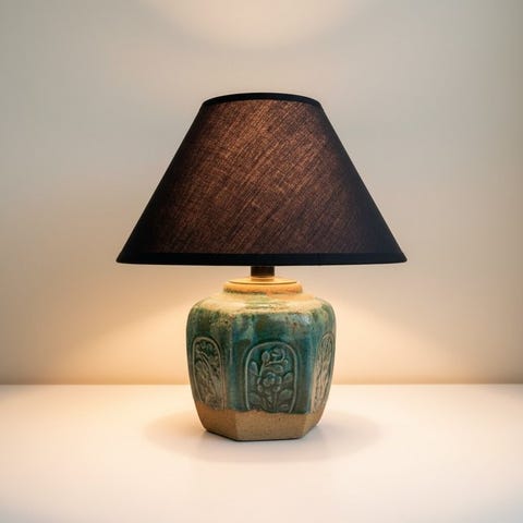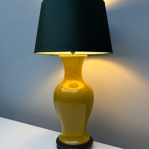 Enestående smukke, yderst dekorative og meget elegante par store bordlamper i celadon-farve med faux bambus-design. Sættet er smukt designet og fremstillet med stor kvalitet og detaljer. Porcelænets farvning er virkelig betagende med rige, bløde grønne nuancer. Lamperne står på en træfod. Vi vurderer, at paret er i generelt god original stand med originale keramiske dele. Skærmene viser tegn på aldring. Se venligst billederne til din reference.