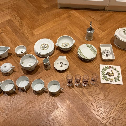 Longchamp - Terre de Fer Chambord stentøjserviser, 24 dele, fremstilet i Frankrig, estimeret periode 1890–1910, i god stand med få ældningspræg og pletter, inklusive en terrine med låg (diameter 20 cm, 10 cm høj), en kasserollekande med låg og fast underfad, to ovale serveringsfade (43×28 cm og 25×15 cm), en grøntsagsskål (diameter 26 cm, 9,5 cm høj), seks dybe tallerkener (diameter 24,5 cm), seks flade tallerkener (diameter 24,5 cm), seks morgenmadstabletter (diameter 22 cm) og en frugtskål på fod (diameter 25 cm, 12,5 cm høj). Klik på den blå "gå til varen" knap, for at købe eller byde på denne vare. Den samlede pris vil blive vist inden du afgiver dit bud.