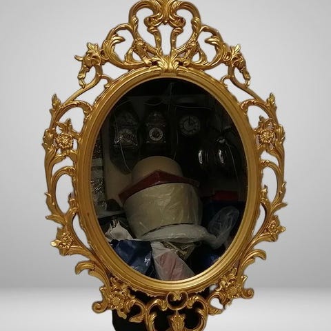 Pragtfuld stor hvid barokstil med rococo-top, inspireret af franske design fra det 17. til det 18. århundrede. Denne skinnende spejl i barokstil med elegante kuiffer og håndskårne detaljer i rammen. Den hvide finish giver et tidløst udtryk, som passer både til moderne og traditionel indretning. Bemærk: Det er en massiv ramme af høj kvalitet, ikke billig MDF eller plastik. Du kan mærke det direkte på vægten – 17 kg – 1,5 meter høj og 0,75 meter bred. Købt for 20 år siden på en auktion i Paris.