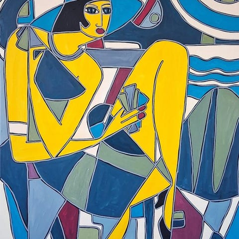 Professionel maler Ksavera - uafhængig tysk kunstner, der skaber store farverige værker. Mor til 3 børn. Ksavera er en samlerkunstner, og hendes malerier findes i museer, virksomheder og private samlinger over hele verden.
