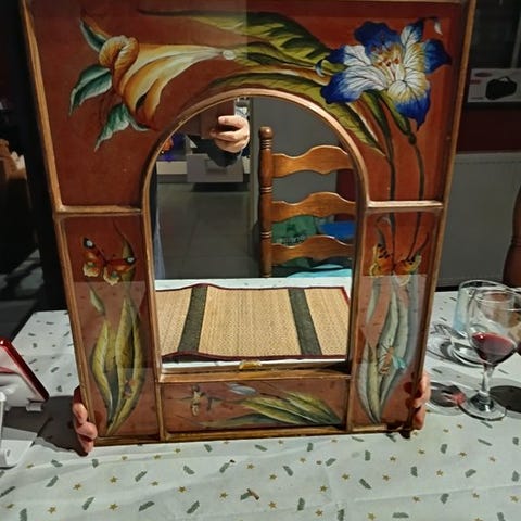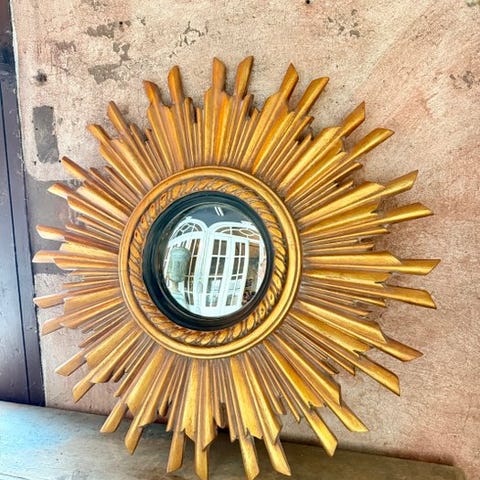 Meget smukt spejl. I god stand, tungt. Se billederne. Solstrålerne er af en slags kunstharpiks (resin).
