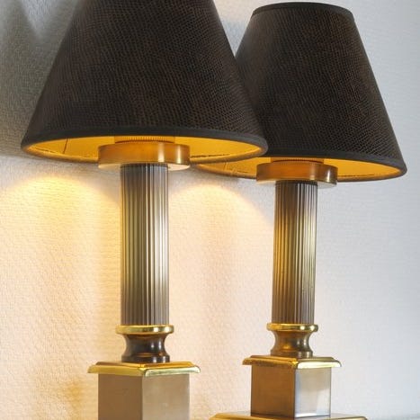 Herda XL neoklassisk kolonnebordlampe i bronze/messing, fra 1970–1980, i fremragende stand og i funktion, med E27-fatning, samlet højde 62 cm, fod Ø20 cm, kolonne 44 cm, lampeskærm Ø30 cm, skærmhøjde 23 cm, kabel 175 cm, nummereret i bunden og med original Herda-plade, leveres med matchende Bordeaux-rød lampeskærm med gyldne kanter. Klik på den blå "gå til varen" knap, for at købe eller byde på denne vare. Den samlede pris vil blive vist inden du afgiver dit bud.